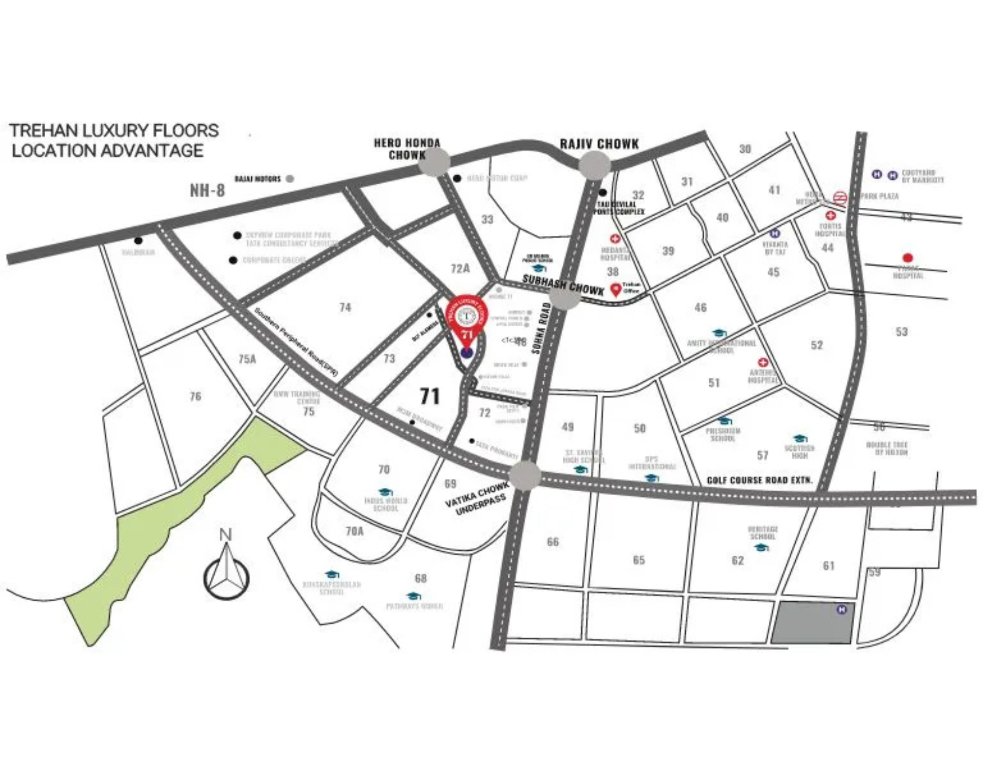 Location Advantages at Trehan Luxury Floors Sector 71, Gurgaon